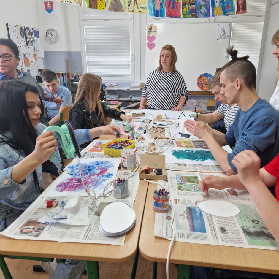 Skolēni aktīvi piedalījās daudzveidīgās aktivitātēs, kuras tika organizētas sadarbībā ar Spojena Skola Piestany skolotājiem un skolēniem. Viņi iepazina mākslas terapiju, izmantojot mālu un vaska tehniku. Tika organizētas radošas darbnīcas, tostarp sveču liešana un ēdienu gatavošana no Latvijas un Slovākijas virtuvēm.