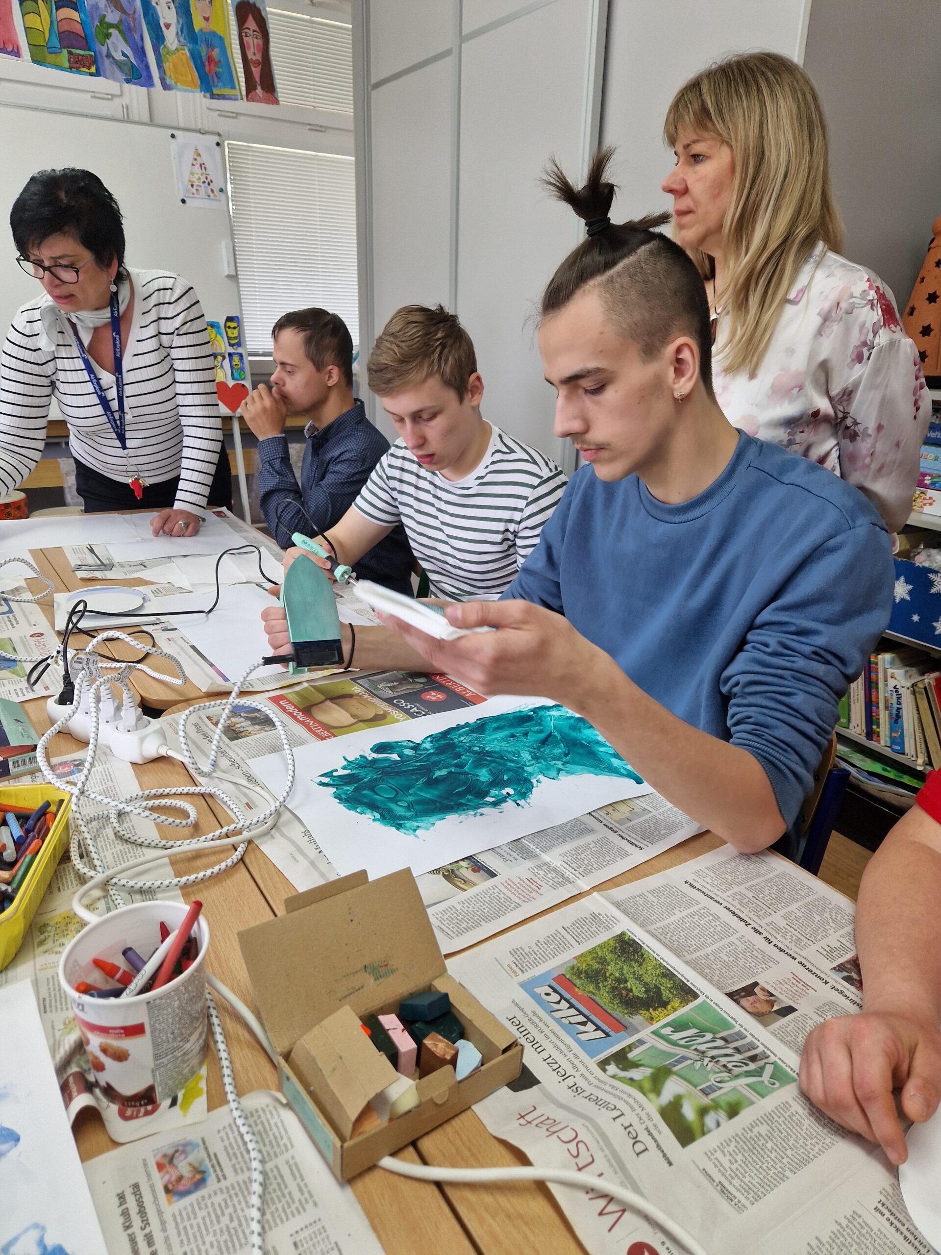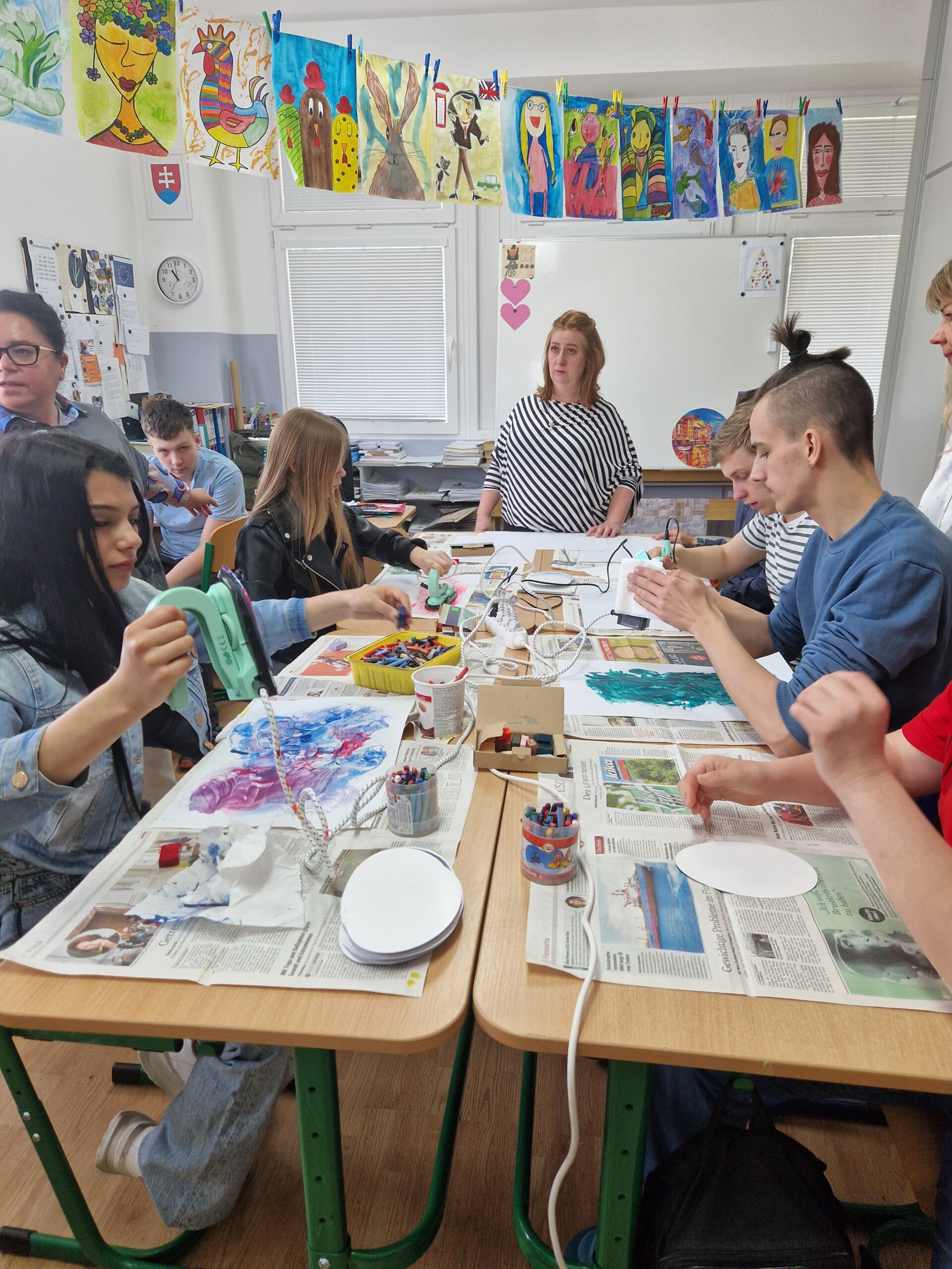 Skolēni aktīvi piedalījās daudzveidīgās aktivitātēs, kuras tika organizētas sadarbībā ar Spojena Skola Piestany skolotājiem un skolēniem. Viņi iepazina mākslas terapiju, izmantojot mālu un vaska tehniku. Tika organizētas radošas darbnīcas, tostarp sveču liešana un ēdienu gatavošana no Latvijas un Slovākijas virtuvēm.