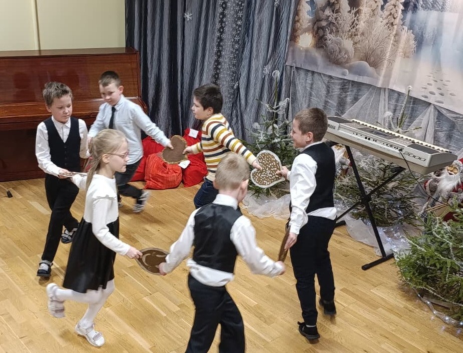 Pasākuma sākumā visus klātesošos uzrunāja skolas direktore Silva Vēvere, daloties sirsnīgos svētku vārdos un pasniedzot Pateicības skolēniem par centību un sasniegumiem. Šis brīdis piešķīra pasākumam siltu pateicības noskaņu. Tālāk skatītāji tika aizvesti ceļojumā pa pasaku mežu, kur starp mirdzošām, jautrām un asām eglītēm un iedomātiem sniega celiņiem satikās rūķīši, draiskie jenoti un biklie zaķi, dejoja piparkūkas, skanēja zvaniņi un dziesmas, bet laba vēlējumi sasildīja ikviena sirdi. Koncertā piedalījās gan pulciņu dalībnieki, gan klašu kolektīvi, apliecinot savu radošumu un mīlestību pret svētkiem. Paldies visiem, kas palīdzēja uzburt šo Ziemassvētku pasaku. Pasākuma noslēgumā pasaku mežs dāvāja vēl vienu prieka mirkli – visi saņēma Ziemassvētku dāvanas, kas bija kā mazi brīnumi zem eglītes. Koncerts “Ziemassvētki pasaku mežā” kļuva par skaistu un neaizmirstamu notikumu, kas atgādināja, cik svarīgi ir ticēt brīnumiem un dalīties priekā ar citiem.